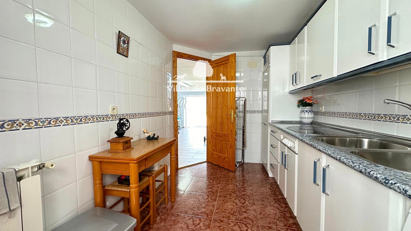 La planta baja ofrece un segundo salón-comedor de generosas dimensiones con chimenea, ideal para primavera y verano, además de una cuarta habitación en suite, segunda cocina, la quinta habitación con ventana al jardín trasero y por último el garaje, todo exterior y con luz natural.