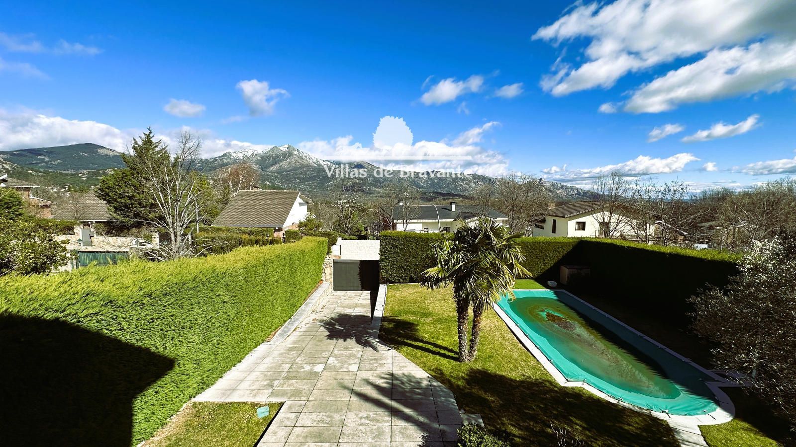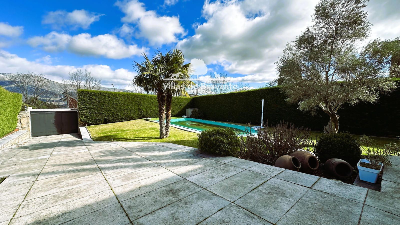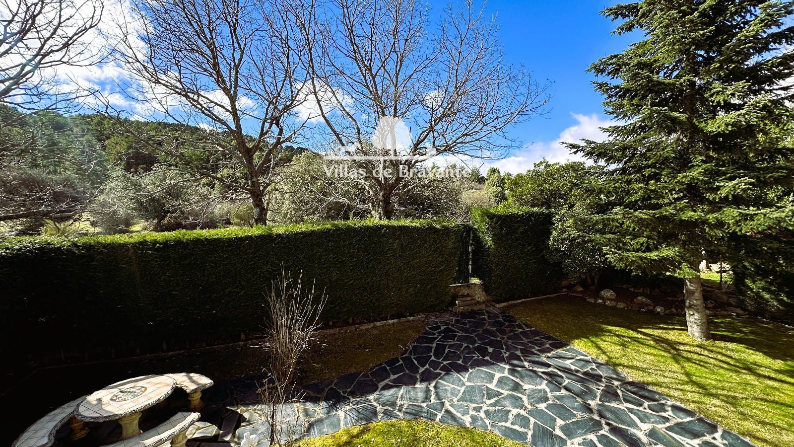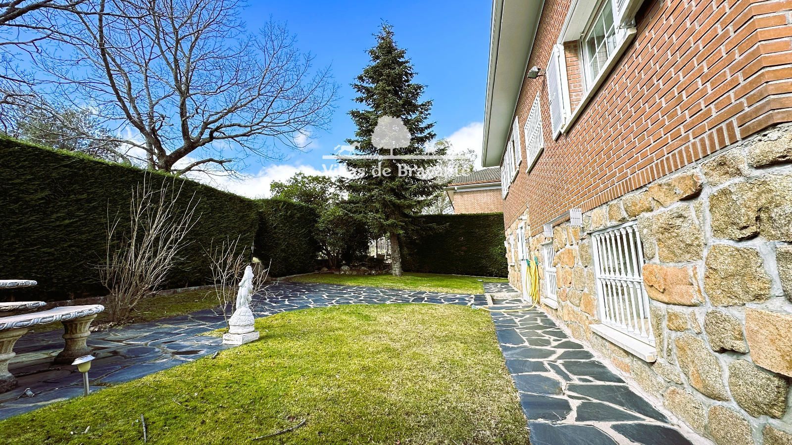 La parcela, con orientación Noreste-Suroeste, ofrece un jardín consolidado y muy privado, con césped natural, arbolado, alumbrado exterior y una piscina de 8 x 5 metros que convierte el exterior en un auténtico oasis. El jardín trasero, con mesa y bancos de piedra, aporta un encanto especial y conecta directamente con caminos y senderos hacia la Sierra de Guadarrama, perfectos para disfrutar de la naturaleza.