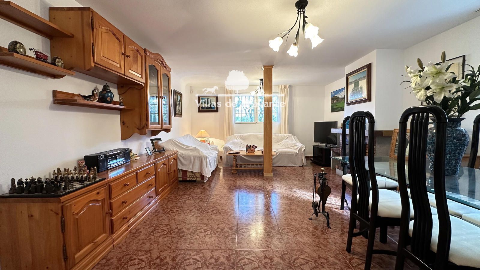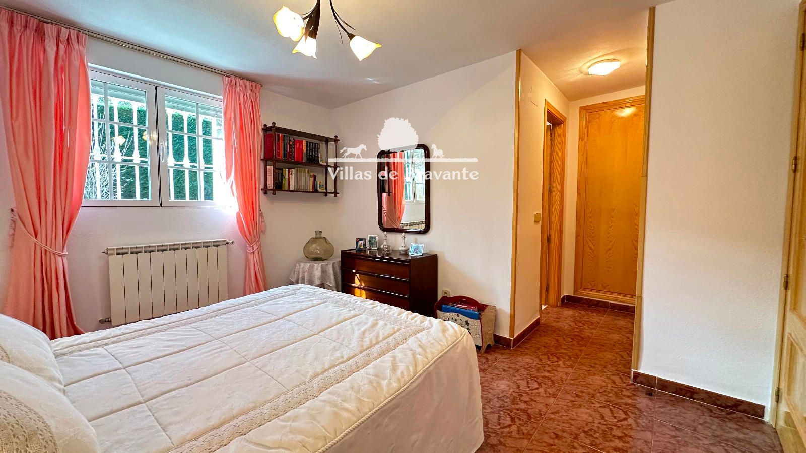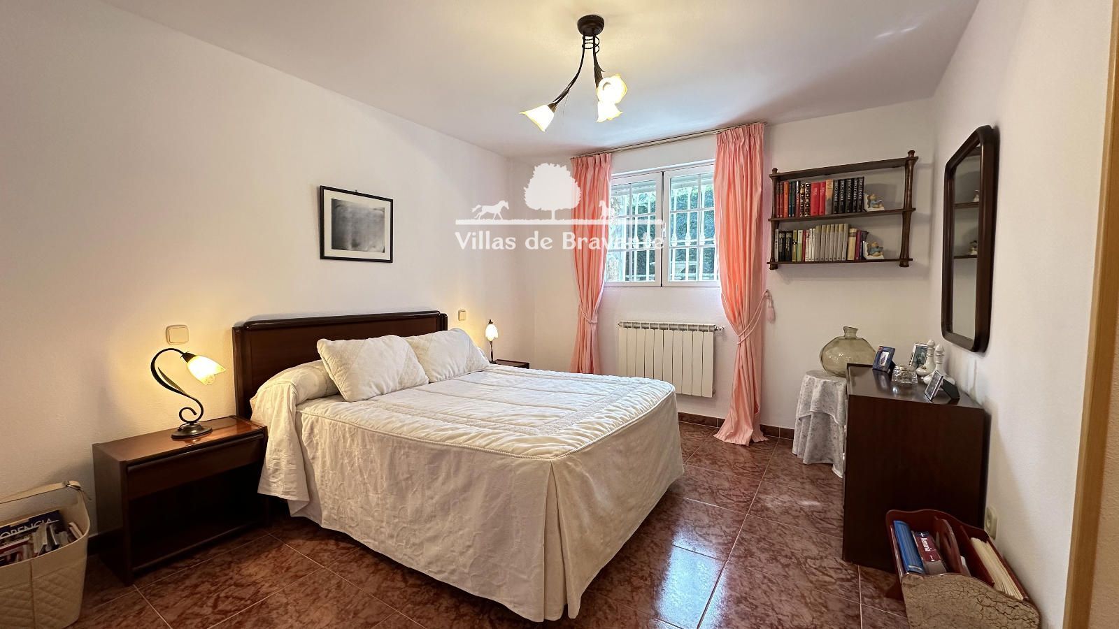 La vivienda, distribuida en dos cómodas plantas, destaca por su luz, amplitud y privilegiadas vistas a la sierra. La planta principal, a la que se accede por una agradable terraza cubierta, alberga un amplio salón-comedor con orientación Oeste y Sur, chimenea en esquina y grandes ventanales abiertos al jardín y la piscina. La cocina, completamente equipada y con espacio para office, resulta práctica y funcional. En esta planta encontramos tres dormitorios y dos baños exteriores en excelente estado, incluyendo una luminosa suite principal con baño de altas calidades y armarios completamente vestidos.