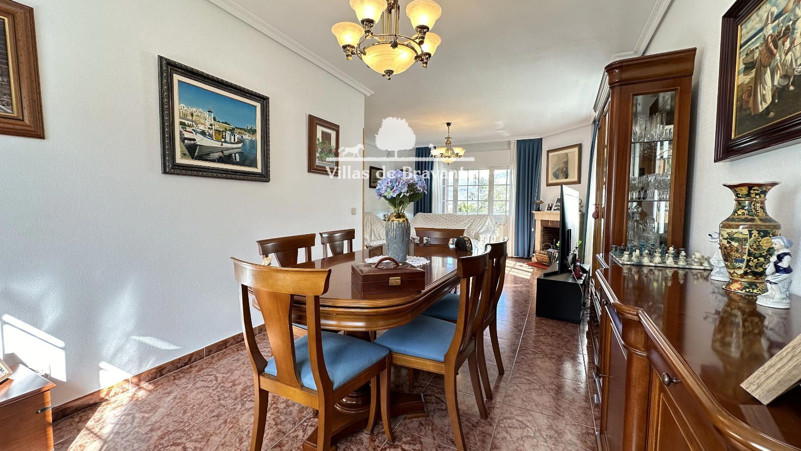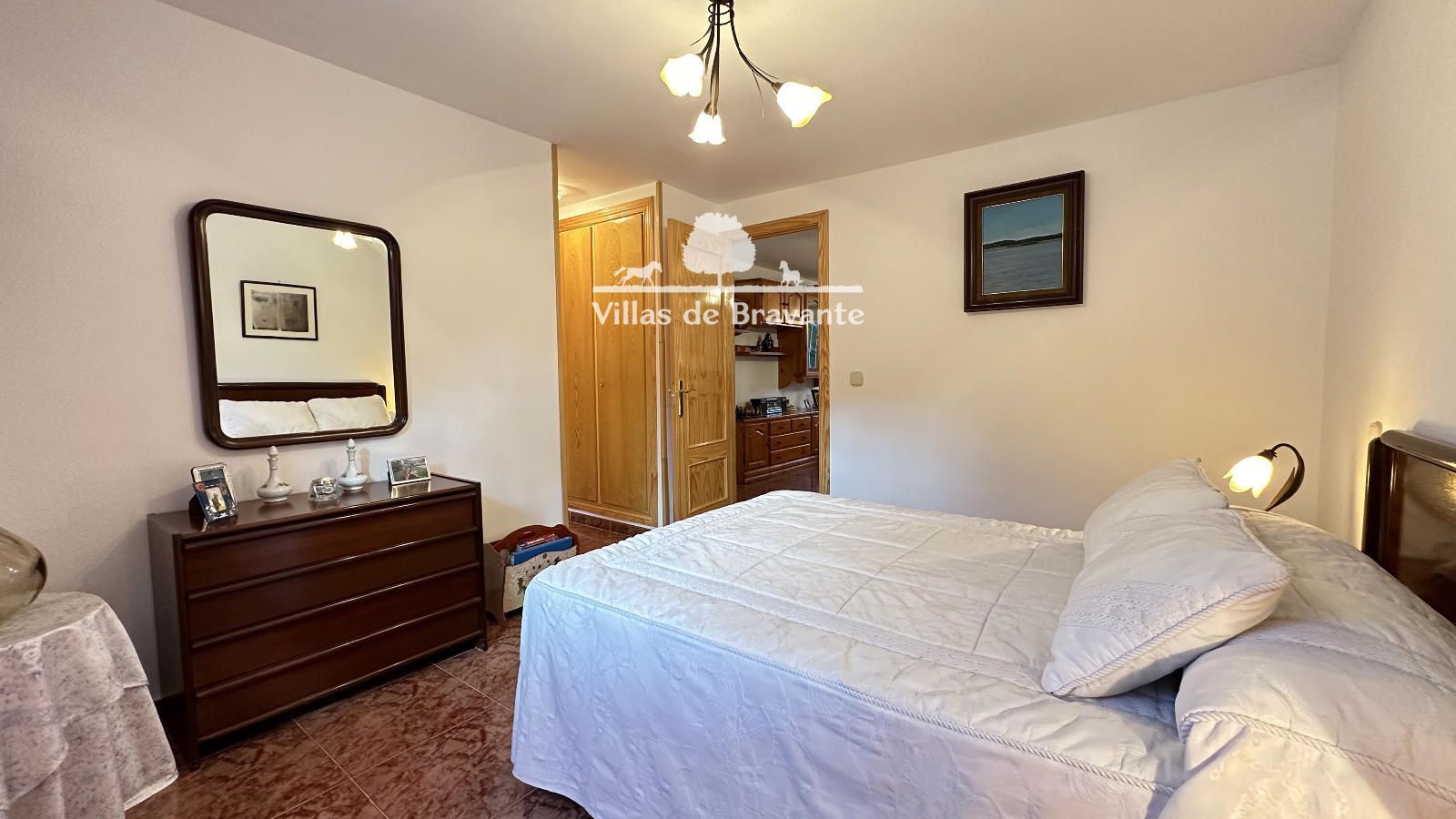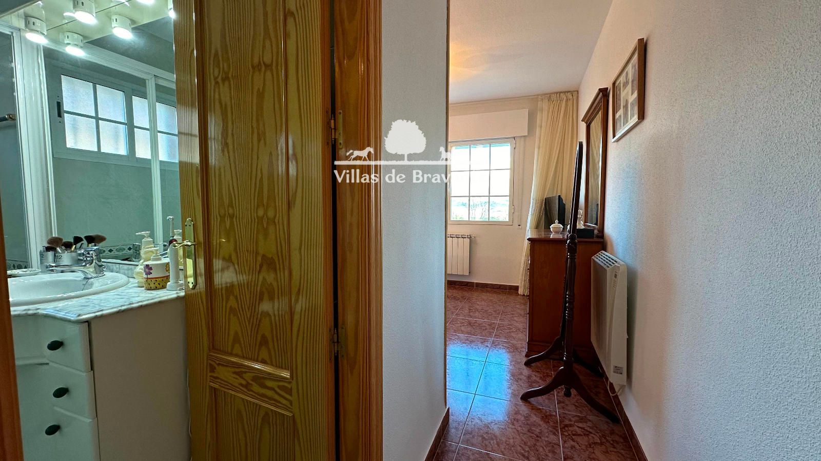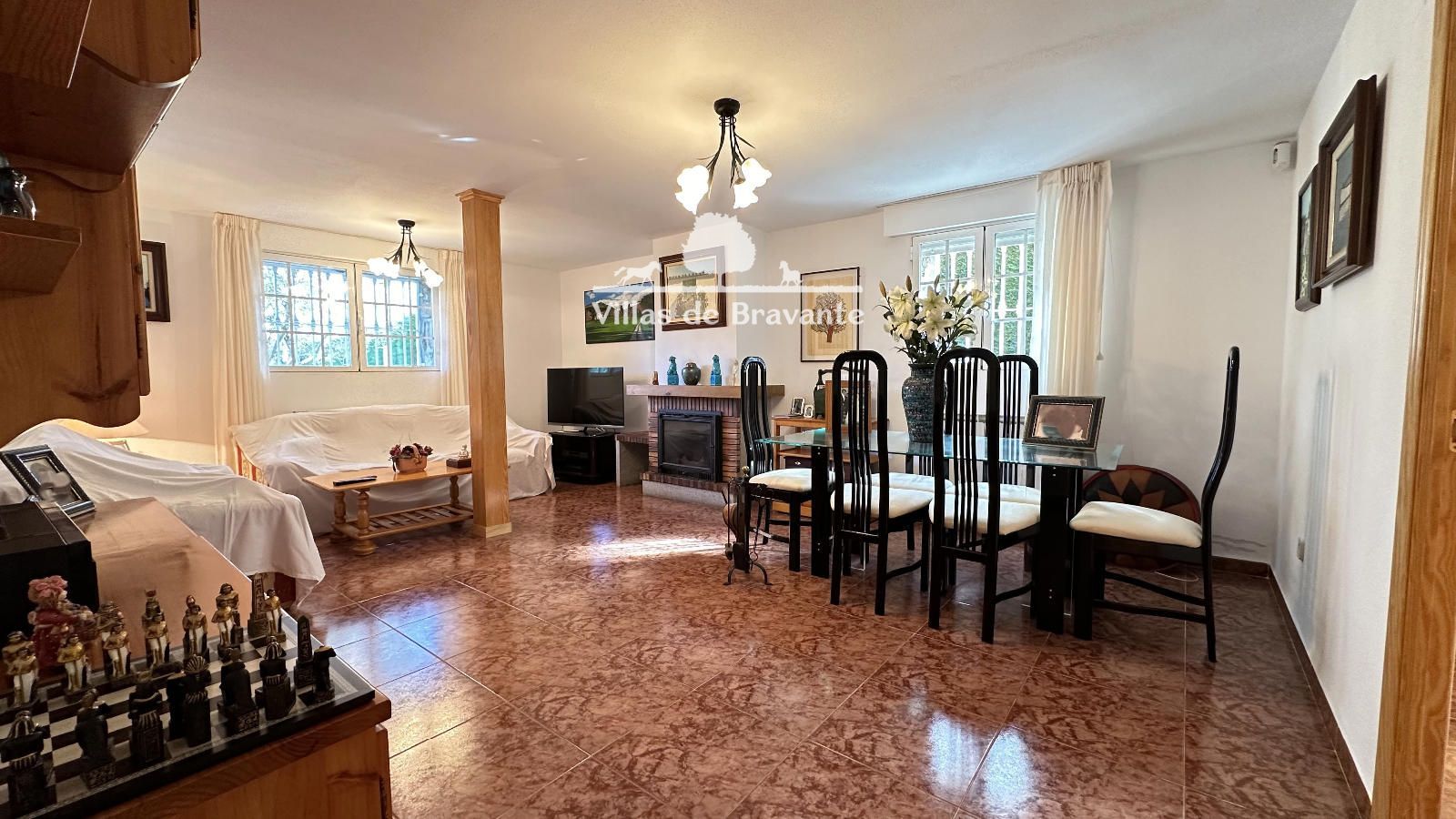 La vivienda, distribuida en dos cómodas plantas, destaca por su luz, amplitud y privilegiadas vistas a la sierra. La planta principal, a la que se accede por una agradable terraza cubierta, alberga un amplio salón-comedor con orientación Oeste y Sur, chimenea en esquina y grandes ventanales abiertos al jardín y la piscina. La cocina, completamente equipada y con espacio para office, resulta práctica y funcional. En esta planta encontramos tres dormitorios y dos baños exteriores en excelente estado, incluyendo una luminosa suite principal con baño de altas calidades y armarios completamente vestidos.