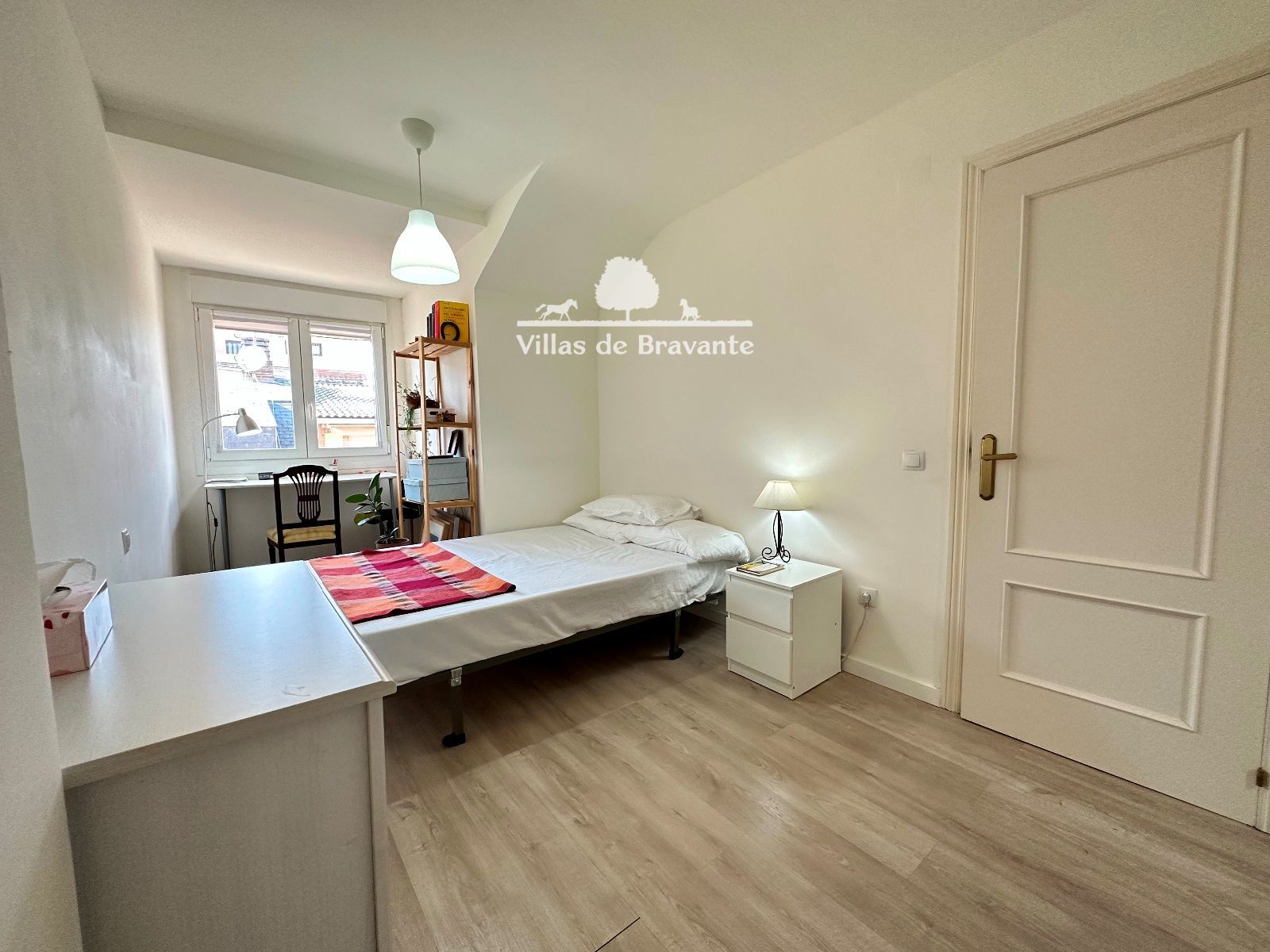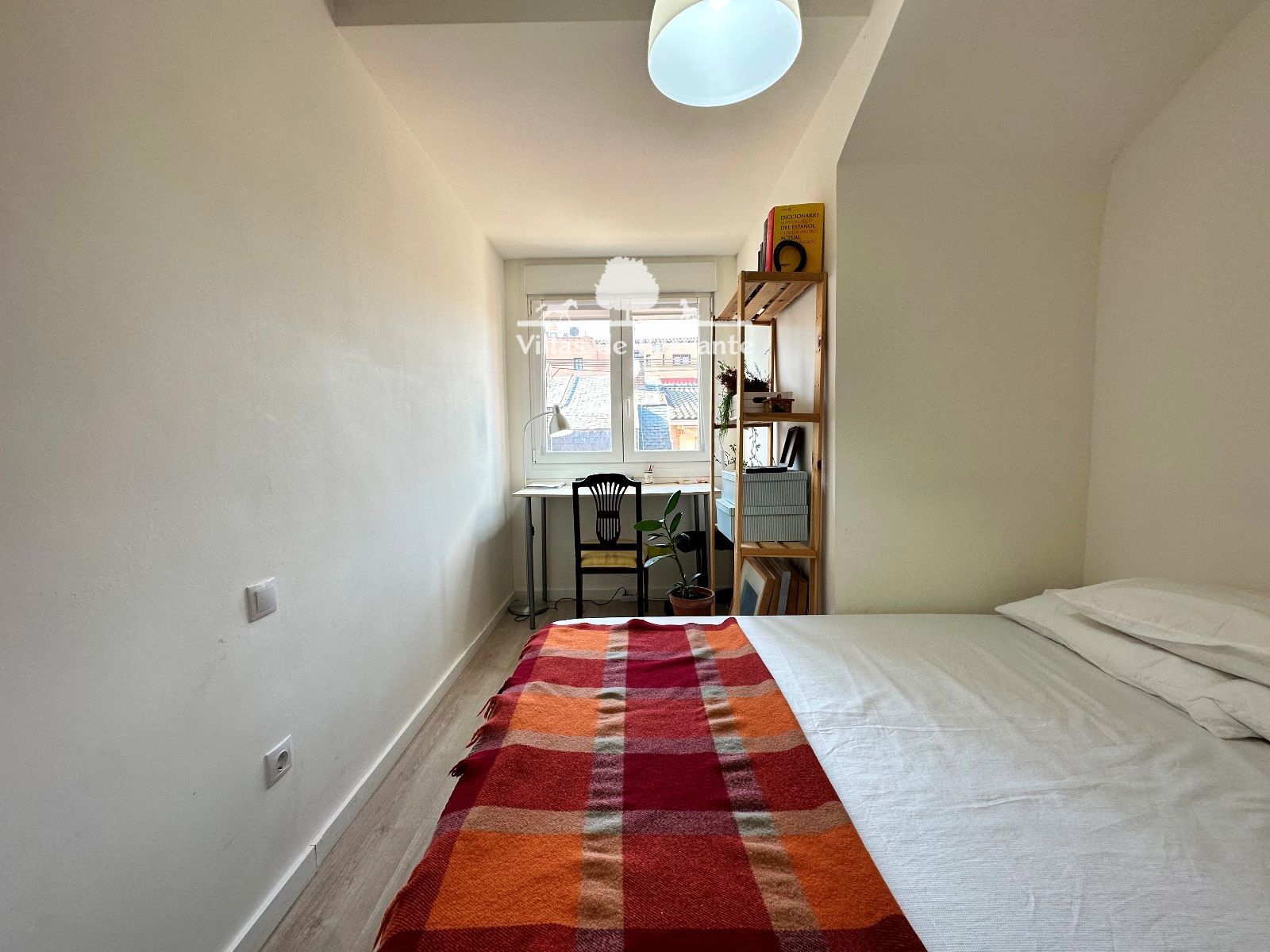 La habitación principal, es de proporciones realmente cómodas. Cuenta con dos armarios y una zona amplia para colocar una butaca, cómoda y otros elementos de decoración o de estudio y trabajo. La habitación cuenta con una ventana de dos hojas, que arroja luz a toda la habitación y una magnifica ventilación.