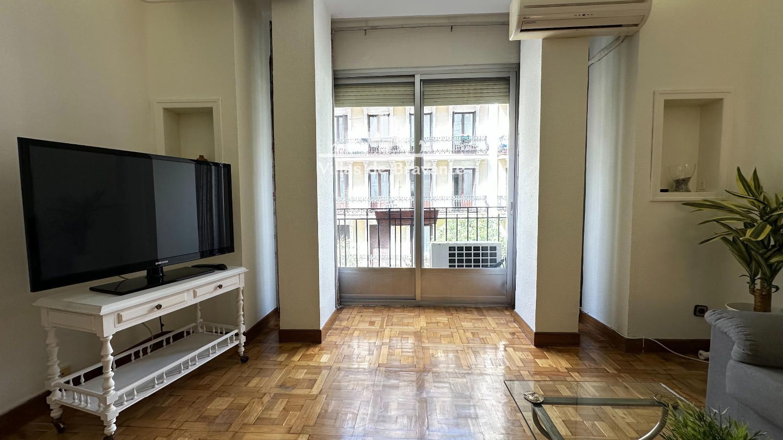 El salón tiene ventanas muy amplias, permitiendo así continuidad y visuales claras, donde la incidencia del sol es muy agradable, inundando toda la estancia. La ventaja competitiva de esta vivienda es, además de la ubicación, la luminosidad. Es lo que la hace especial. Dispone de dos balcones a la calle Lagasca.