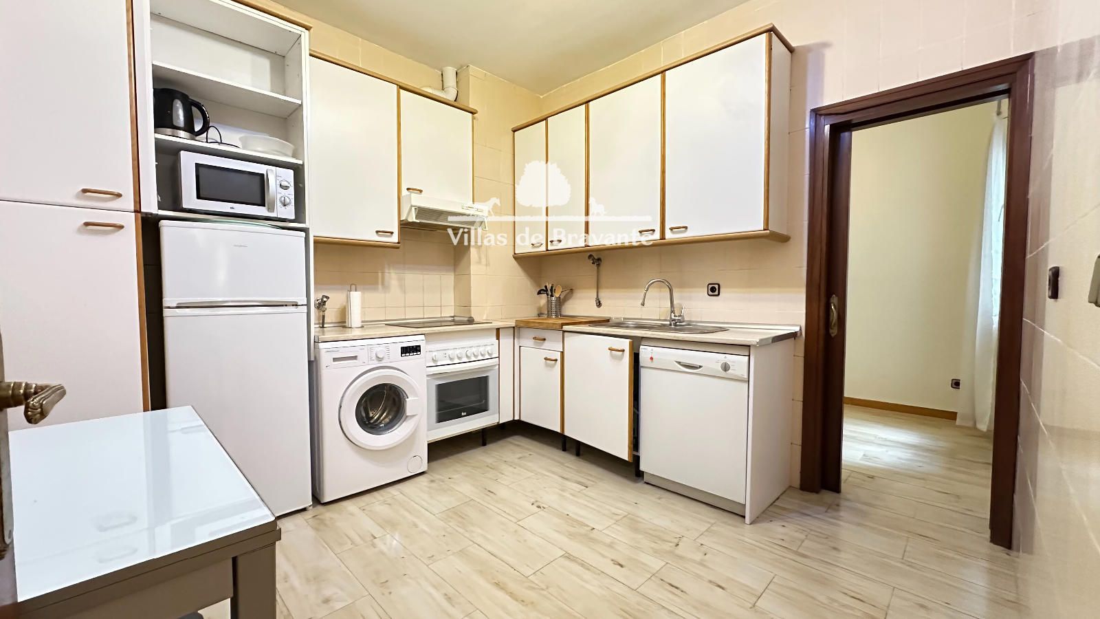 Con respecto a la cocina, reseñar su funcionalidad y correcta distribución de muebles altos y bajos, con encimera en ambos lados.