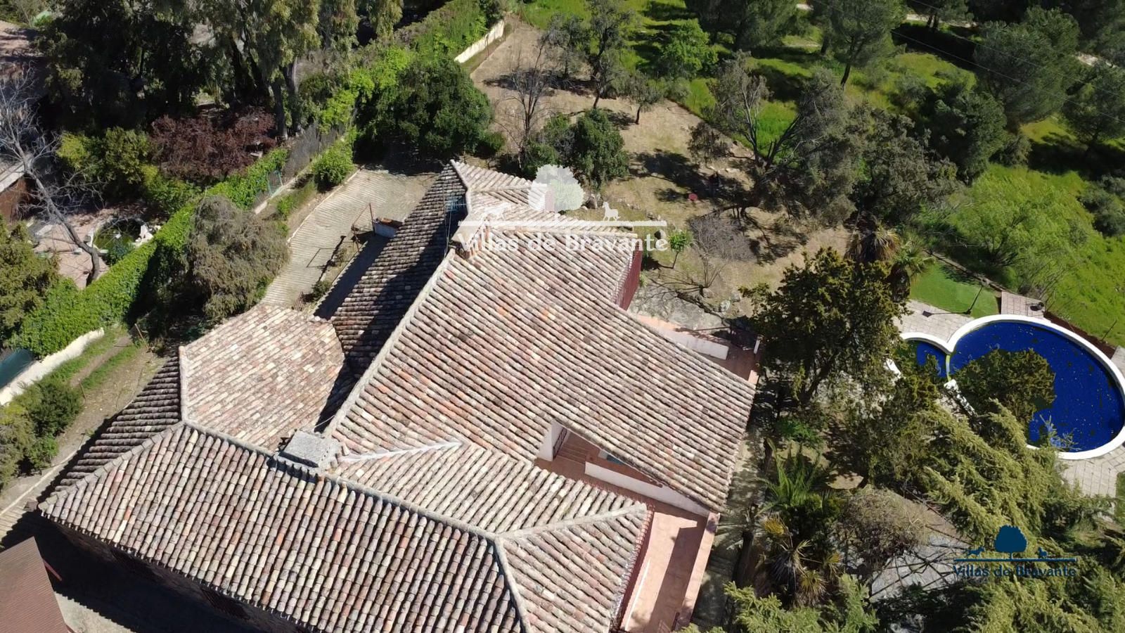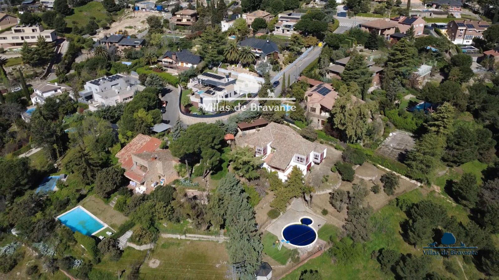 Villas de Bravante ofrece en EXCLUSIVA y sin honorarios al comprador este chalet independiente en la zona residencial de Los Peñascales, sobre una amplia parcela de 1.755 m² con una original piscina de doble circunferencia (zona de adultos e infantil).