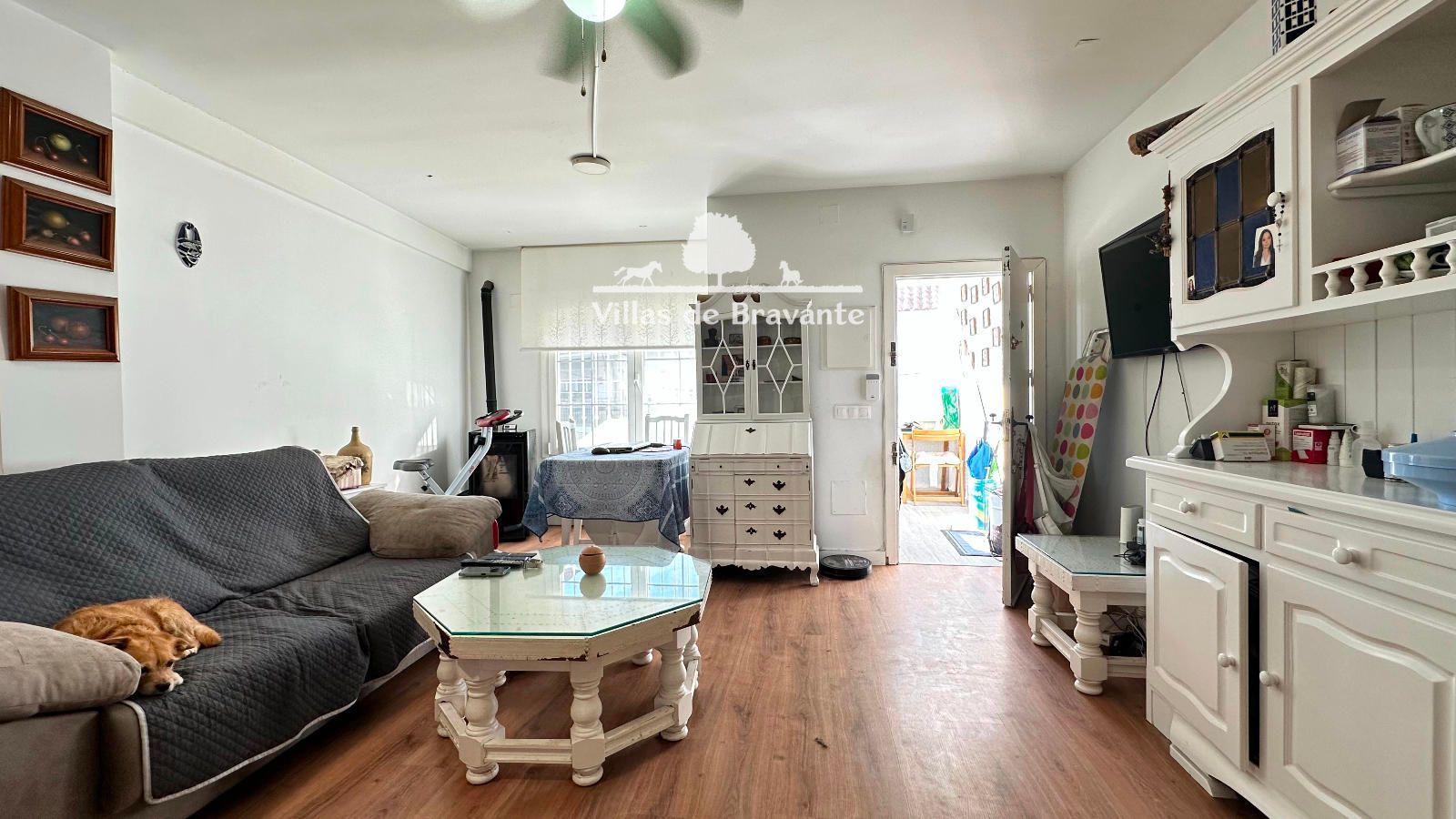 El salón, de proporciones correctas, tiene una luz y ambiente muy alegre gracias al sol que recibe y al diseño de concepto abierto de toda la planta, con la escalera vista de un solo tramo. Además, la luz del sol inunda la estancia gracias al zaguán, decorado con plantas y flores que proyectan alegría y frescura a la vivienda.